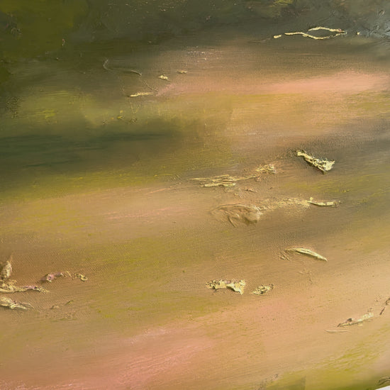 Inspired by fleeting glimpses of meadows at golden hour in the Irish summer, capturing soft blush tones, deep greens, and subtle golden glimmers that dance across the canvas. Textured, yet dreamlike, it offers an abstracted impression of a meadow - open to viewers interpretation. A calming, evocative piece that brings the essence of landscape into any space without being bound to one place or moment.